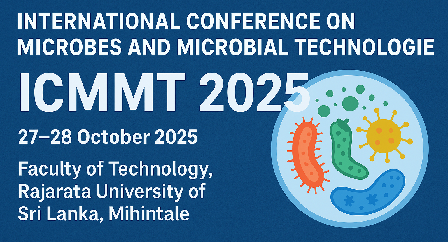 The 1st International Conference on Microbes and Microbial Technologies (ICMMT 2025) was successfully held at the Faculty of Technology, Rajarata University of Sri Lanka, on 27–28 October 2025. The conference served as a vibrant platform for academics, researchers, professionals, and students from across the globe to share innovative findings and discuss emerging trends in the field of microbial sciences and biotechnological applications.