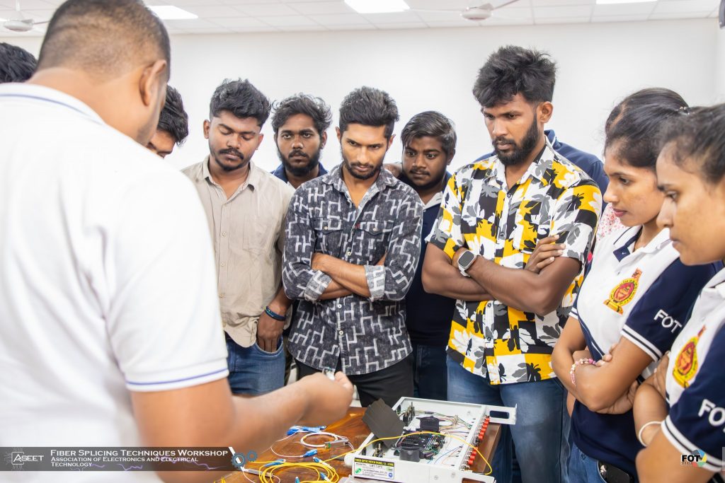 The “Fiber splicing Techniques” workshop was held on 13th June 2025 at New Faculty of Technology Building. This workshop is organized by Association of Electrical and Electronic Technology(EET) , Faculty of Technology , Rajarata University of Sri Lanka . It was conducted by Eng. A.M. Rifnaz, OPMC Manager, Sri Lanka Telecom.