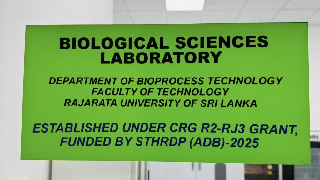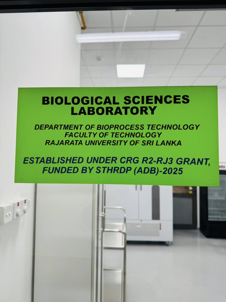 The Biological Sciences Laboratory (de Zoysa's lab) and Aqua Lab of the Department of Bioprocess Technology, Faculty of Technology, Rajarata University of Sri Lanka, was established in 2025 with USD 800,000 from the STHRDP (ADB), CRG R2-RJ3 grant. Designed as a flagship shared facility, it supports teaching, research, and industry collaboration across molecular biology, microbiology, bioprocessing, and environmental analytics. The labs are integrate modern cold-chain storage, biosafety and sterilization, culture and growth systems, analytical platforms, sample-preparation tools, and field-sampling capabilities. By providing state-of-the-art training for students and shared access for regional partners, the facility accelerates technology transfer, advances national R&D priorities, and contributes to the Sustainable Development Goals in health, industry and innovation, and life below water. In addition, the Biological Sciences Laboratory and Aqua Lab arw focusing on these main streams of the research such as Biology, Marine Science, Natural Products, Food Science and Safety, Conservation Biology.